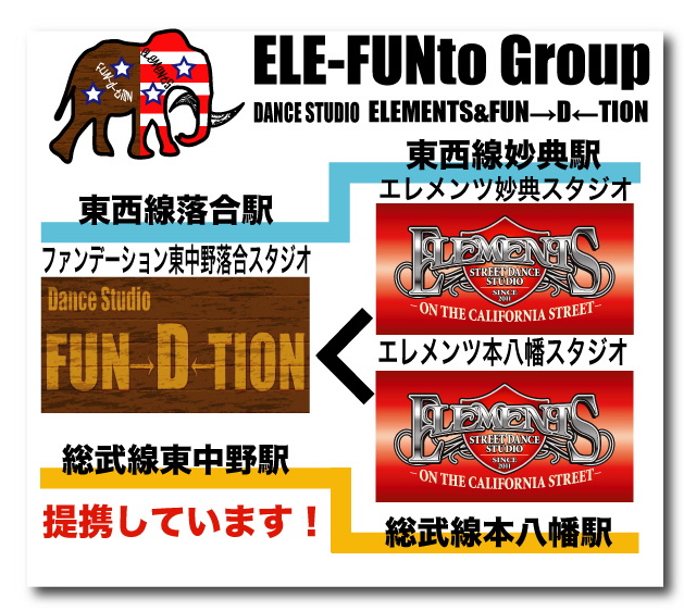 東西線/総武線/外房線を利用する方は『E/Fフリーパス』『エレファントフリーパス』を使って、是非2つのダンススクールを自由にご利用下さい^^
