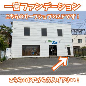 一宮ファンデーション サーフショップの2階です 駐車場はスタジオの道路反対側 TEL:0475-28-9203 住所:千葉県長生郡一宮町東浪見7427−2 Shop DO 2F この看板が目印!待合室もあります!スタジオ内で見学も可能です!